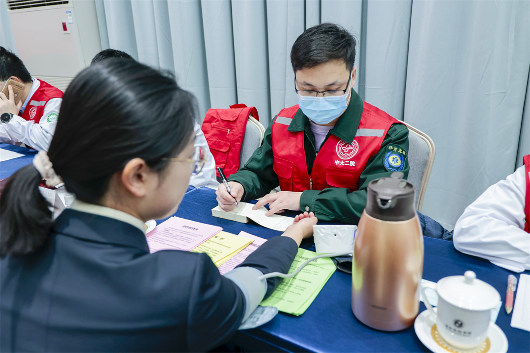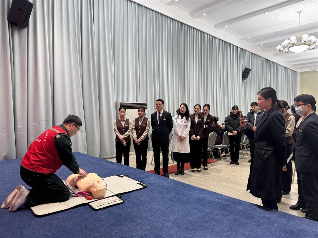 活动现场,来自山东中医药大学第二附属医院的医疗专家们发挥专业特长,为宾馆职工提供健康咨询、疾病初筛、中医诊疗等一对一咨询。中医科专家通过脉诊为亚健康人群开具调理方案,针灸理疗科现场演示肩颈放松手法,医学美容科为女性职工普及科学护肤知识,并赠送医用级面膜。此外,急诊团队还通过模拟演练,手把手教授心肺复苏、海姆立克急救法等实用技能,提升职工的应急救护能力;通过八段锦现场教学,为宾馆职工提升身体素质、培养健康习惯提供了好的遵循。宾馆团员青年志愿者在现场与医务人员紧密配合,让干部职工更好感受中西医结合诊疗的特色优势,普及了健康理念,增强了防范意识。