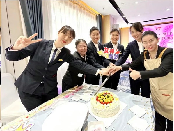 现场的女员工们纷纷化身为“烘焙大师”,开始动手制作属于自己的特色蛋糕。她们手法娴熟地涂抹奶油,精心挑选水果进行搭配摆放,还不忘放上温馨的贺卡点缀。在大家的巧手下,一个个平凡无奇的蛋糕坯逐渐蜕变,成为了独一无二、饱含创意与心意的艺术品。整个活动现场弥漫着香甜的气息,女同胞们的欢声笑语此起彼伏,温馨而欢乐的氛围感染着每一个人。活动临近尾声,大家带着满满的幸福与甜蜜,一同拍摄了甜美的合影,为这个美好的节日留下珍贵的记忆。