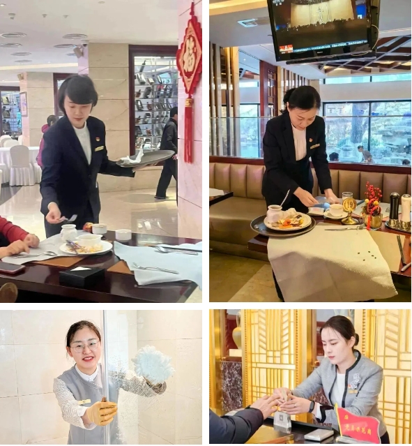 有一种坚守,叫春节我在岗。春节期间,一波波人流高峰纷至沓来。大厦党委吹响党员集结号,班子成员带头,党员突击队冲锋在前,主动参与客房清理、餐饮接待等岗位的志愿服务,让党旗在经营一线高高飘扬。节日期间,党员突击队参与帮工近200余人次,有力保证了经营服务的有序运转。在党员干部的带动下,全体员工以高度的责任感,舍小家,为大家,积极参与到接待服务中来。每个人的背后,都有一个乃至几个家庭的默默支持和奉献,为了大厦的发展,大家舍弃了阖家团圆的机会,在各自的岗位上忘我工作,无私地奉献,为宾客营造了家一般的感受。