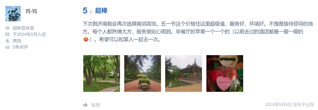 宾客好评如潮。来馆宾客对宾馆位置、环境、菜品、服务给予了高度赞赏,宾馆展现了国宾馆高标准、高质量、高要求的服务品质与社会担当!